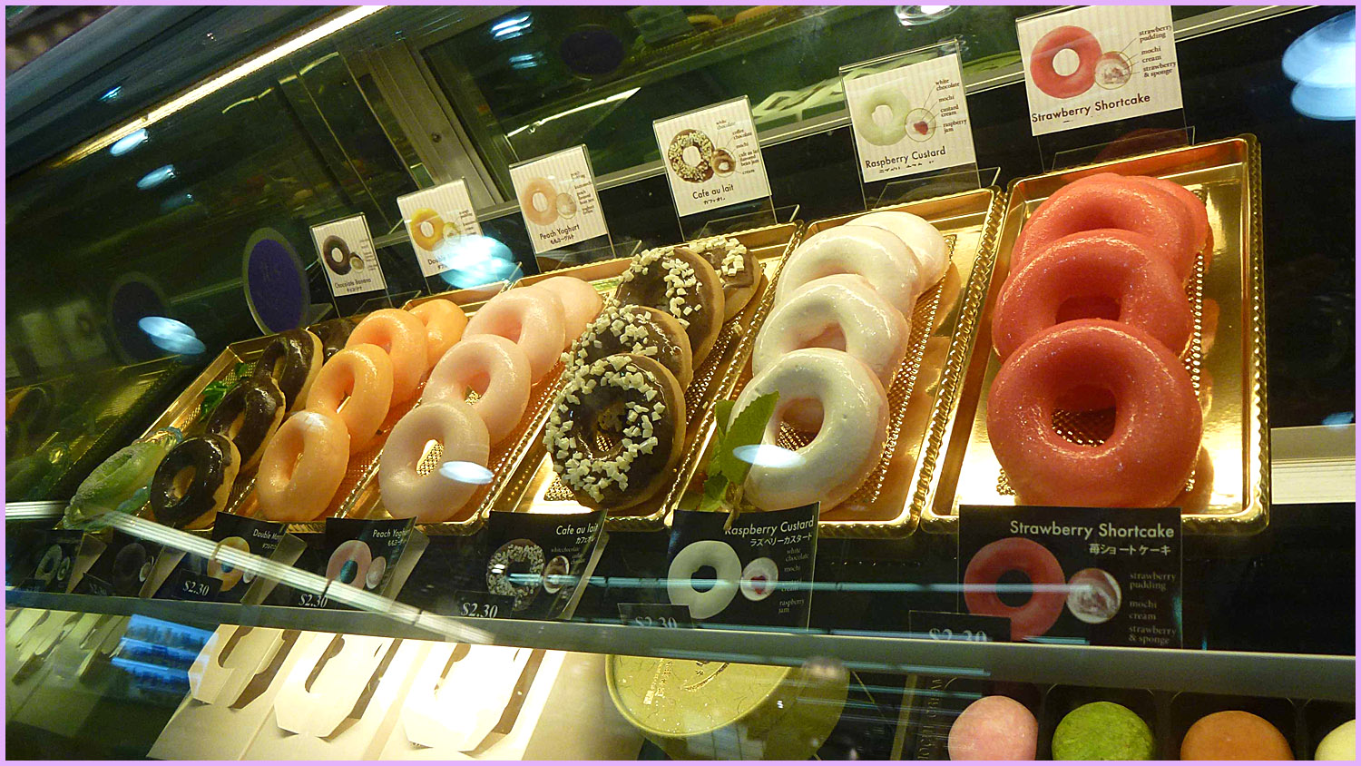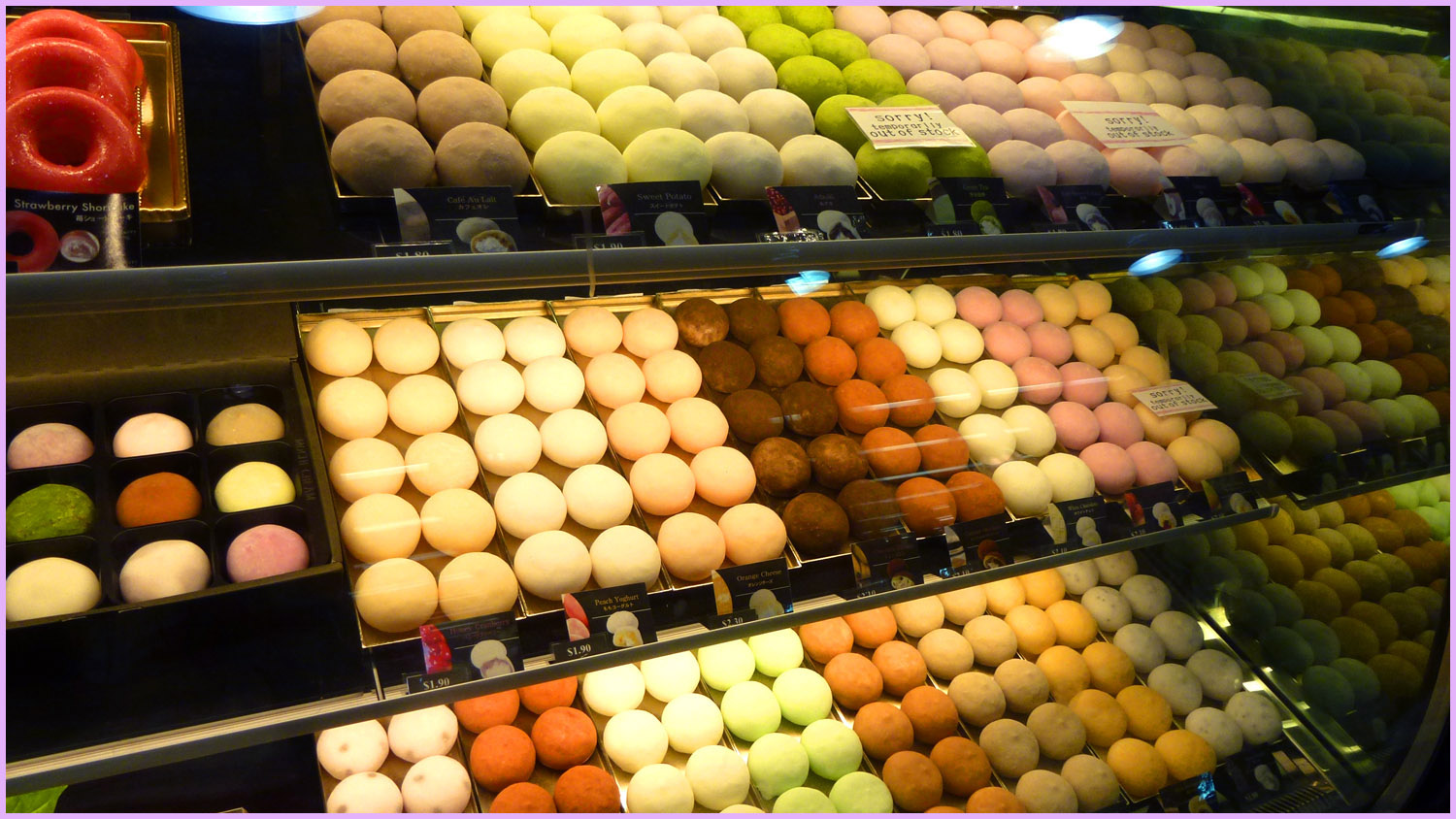 We eventually finalized our purchase and picked up these flavors of the donut-shaped Mochido: Cafe au lait, Double Mango, Strawberry Shortcake, and Chocolate Banana.