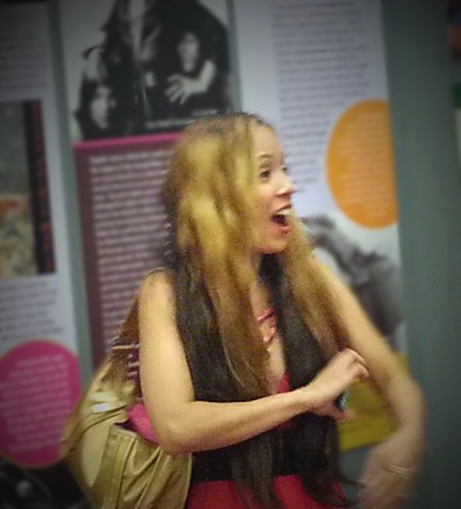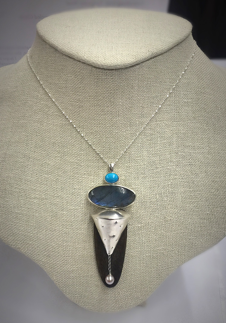 Eliana Zepeda Graham’s Necklace: Falling Petals. She is seen here modeling with her piece. She incorporated a stylized silver chinese lantern that I made into her necklace.