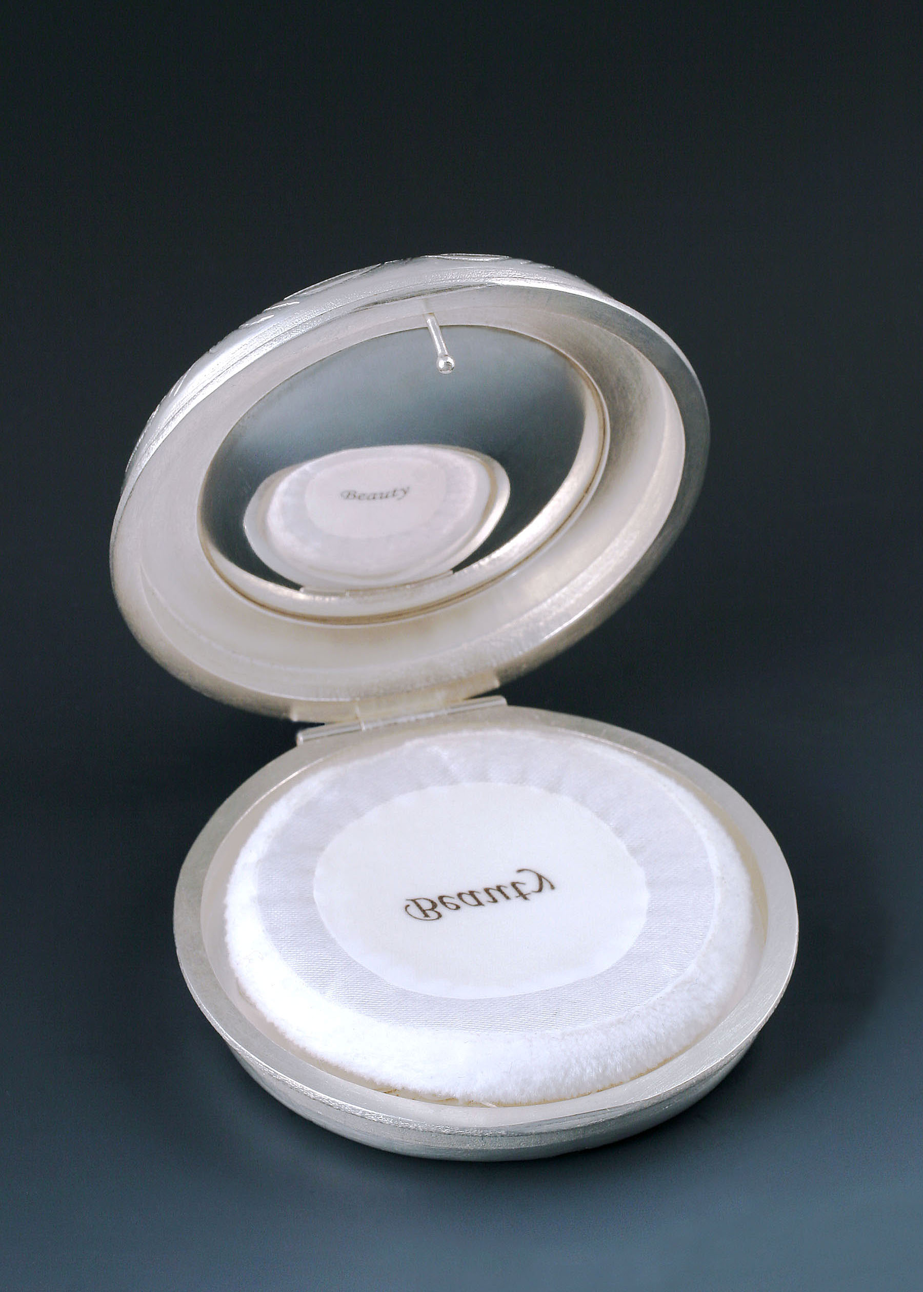 Estee Lauder Compact: I fabricated this compact out of sterling silver and champleve’ glass enamel. This was a piece in my MFA thesis show,” Instruments of Vanity”.
