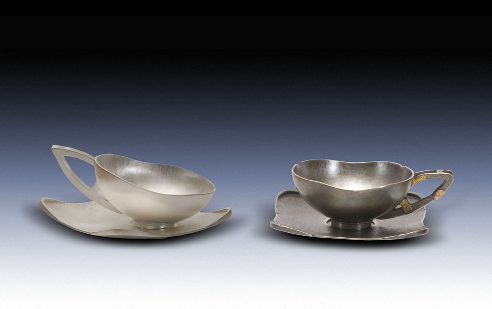 Sublime Senescence: I fabricated these teacups in silver and gold. This piece was a part of my MFA thesis show "Instruments of Vanity".