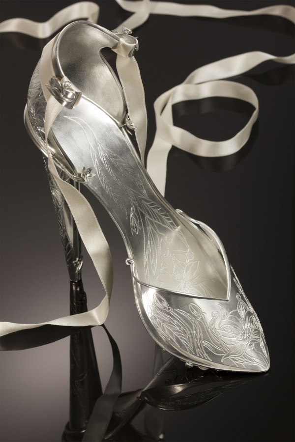 I fabricated this life- size silver shoe as part of my MFA thesis show titled “Instruments of Vanity”. This shoe also exhibited as part of a traveling group show organized by The Fuller Craft Museum titled “The Perfect Fit”.