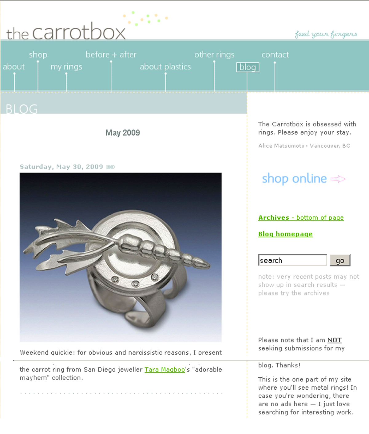 The Carrot Box is a beautiful online blog about modern jewelry. My “One-Carrot-Ring” was featured on their website.