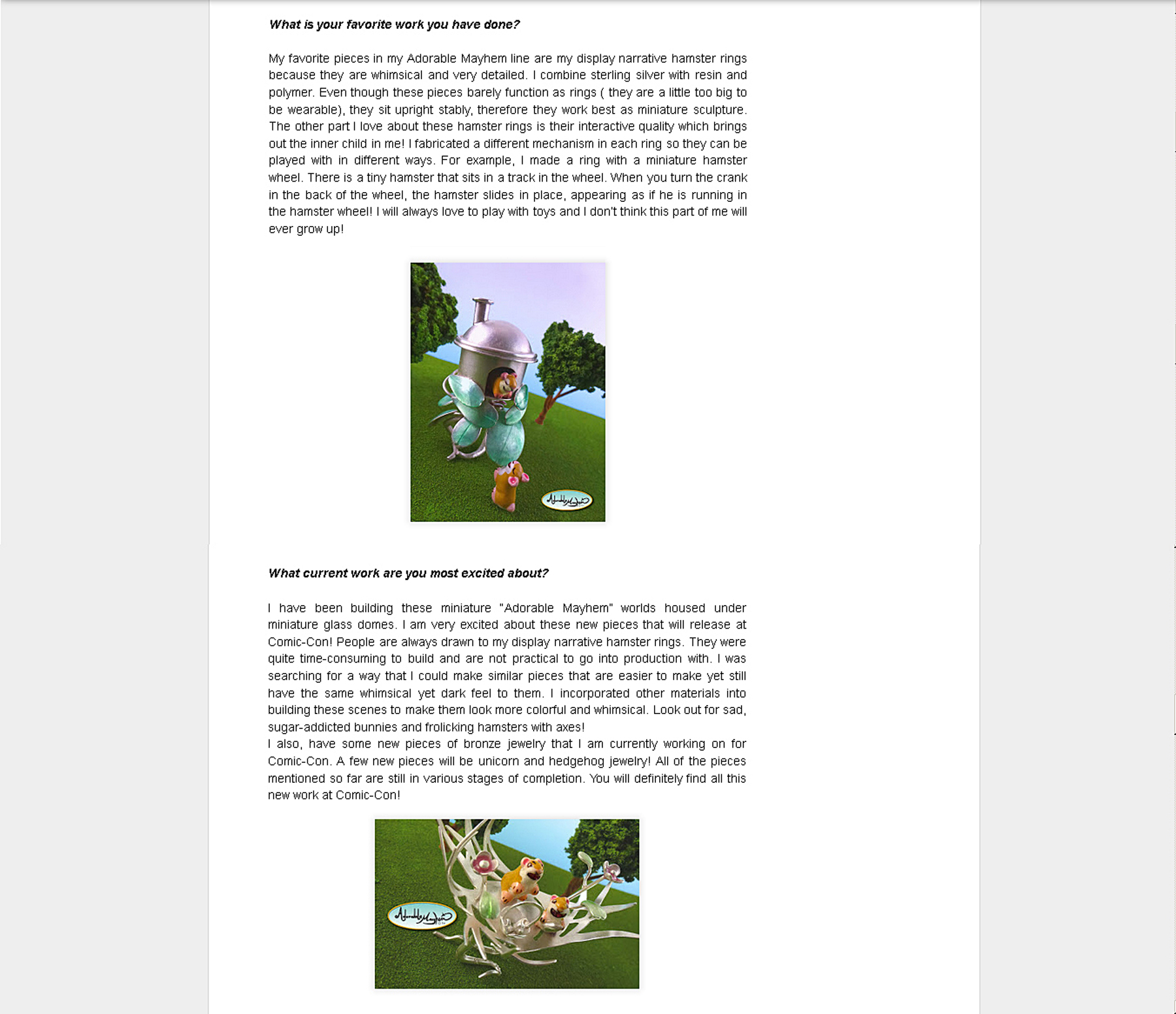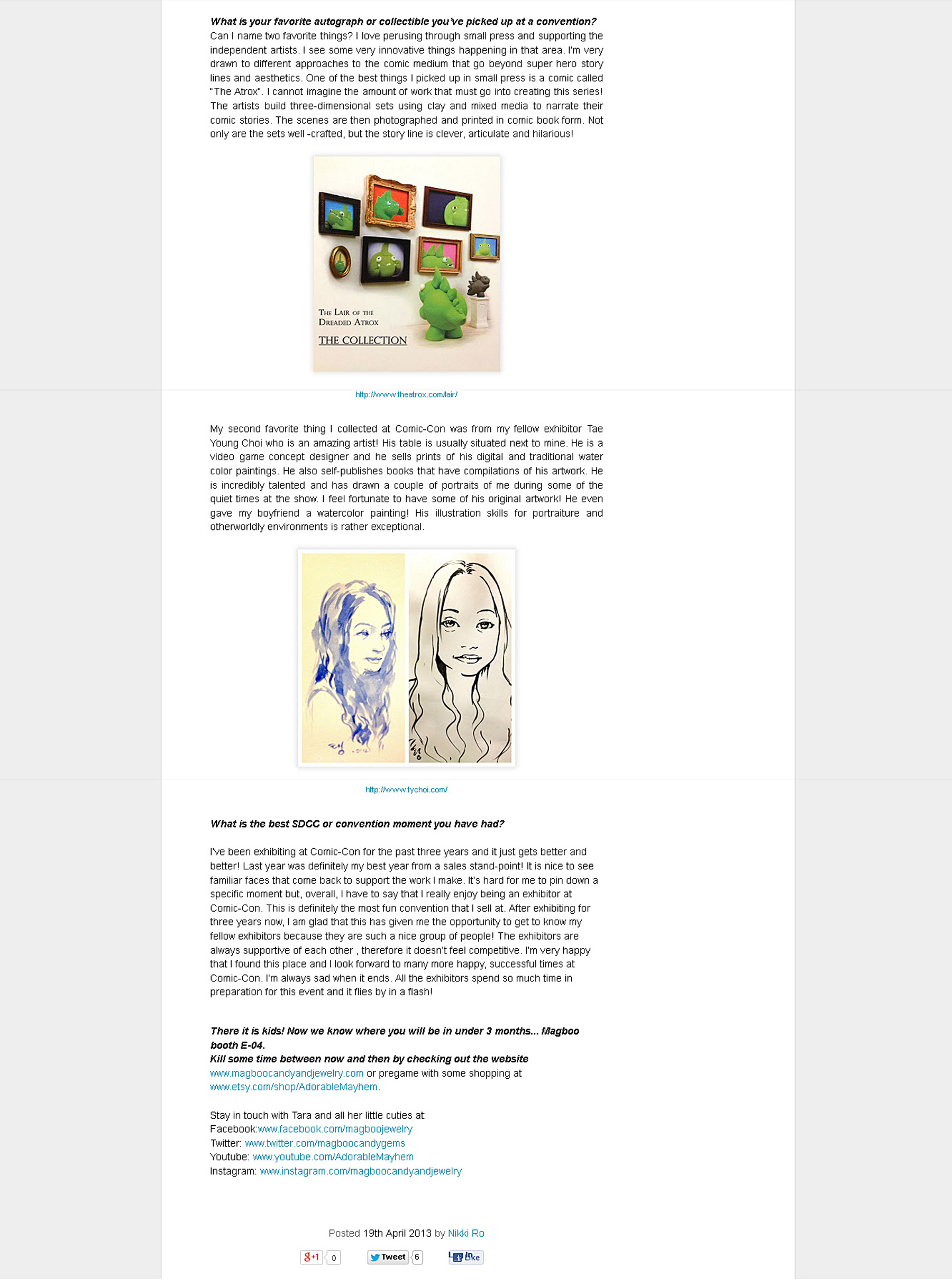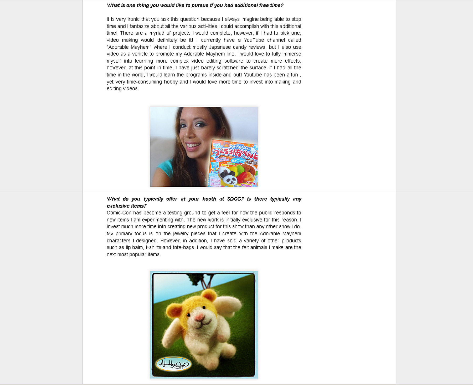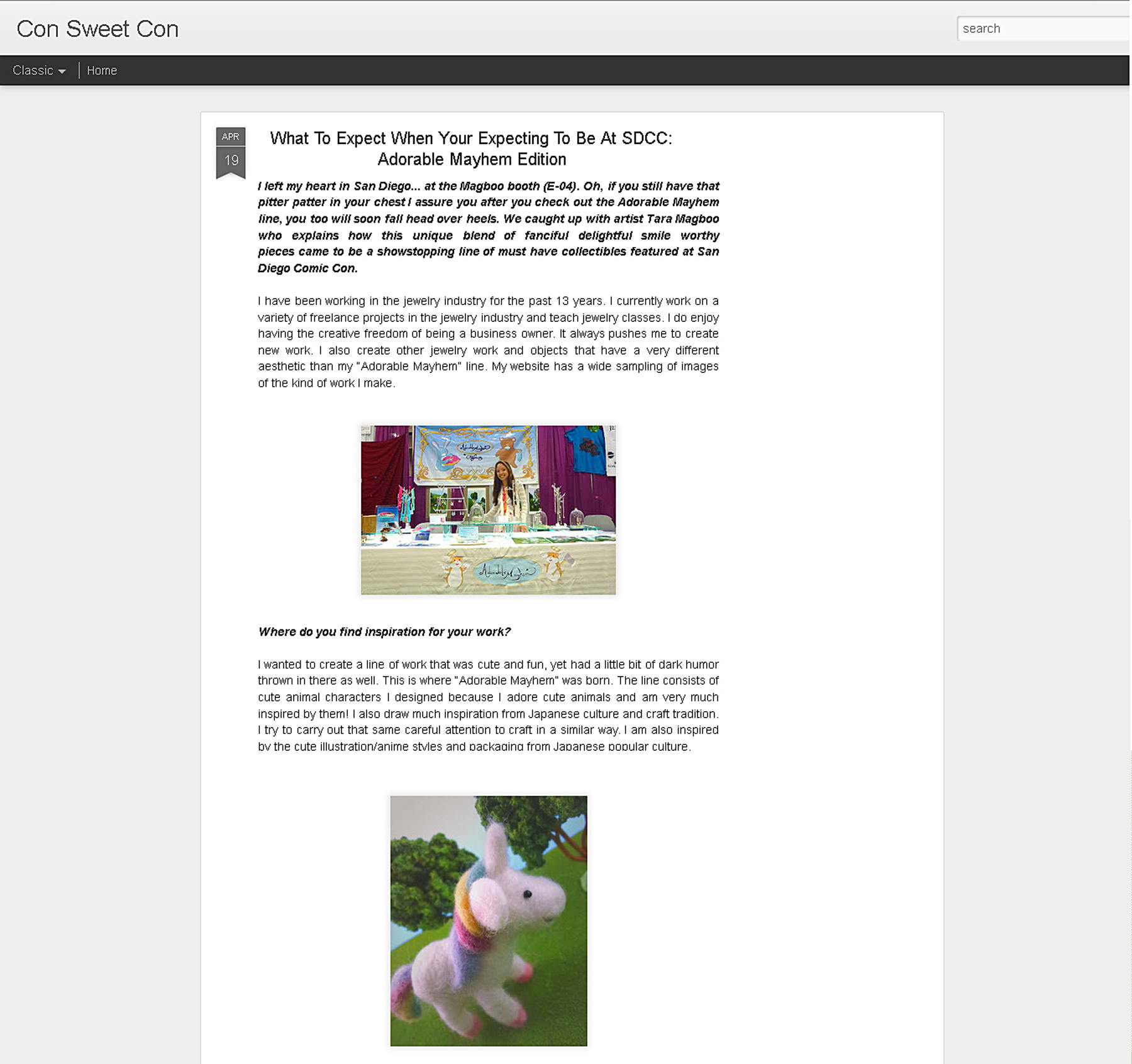 I gave an an in-depth interview about my Adorable Mayhem line on the San Diego Comic-Con online blog, Con Sweet Con.