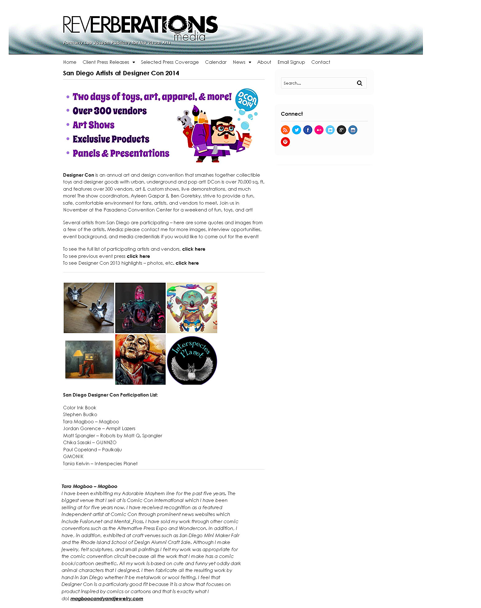 Reverberations Media wrote an article showcasing San Diego artists exhibiting at Designer Con 2014. I was one of the artists interviewed about my Adorable Mayhem line that I sold at the show. This was my second year exhibiting at Designer Con and have future plans for exhibiting again in 2015. The online article is featured on www.reverberationsmedia.com/san–diego–artists–designer–con-2014/