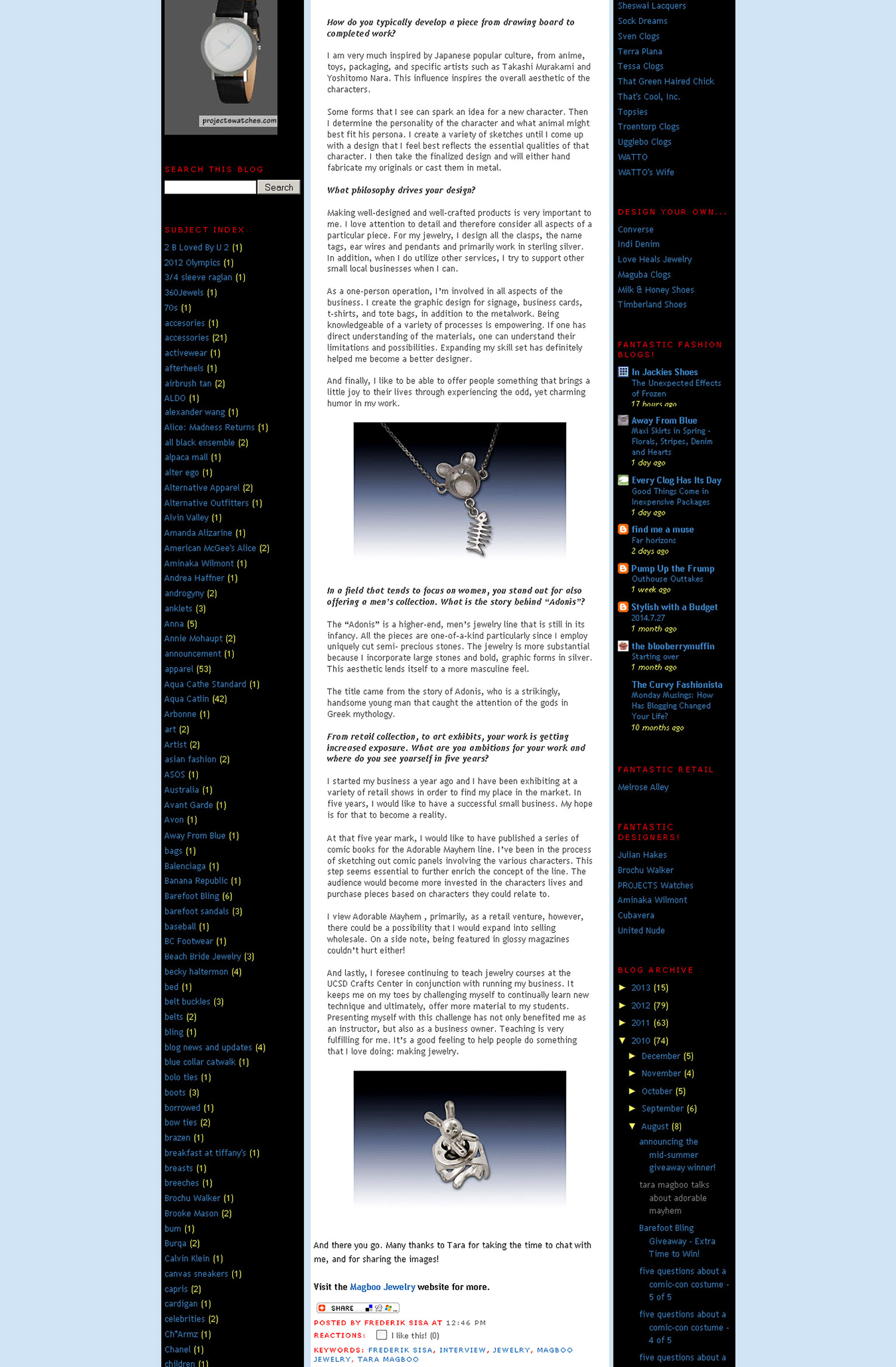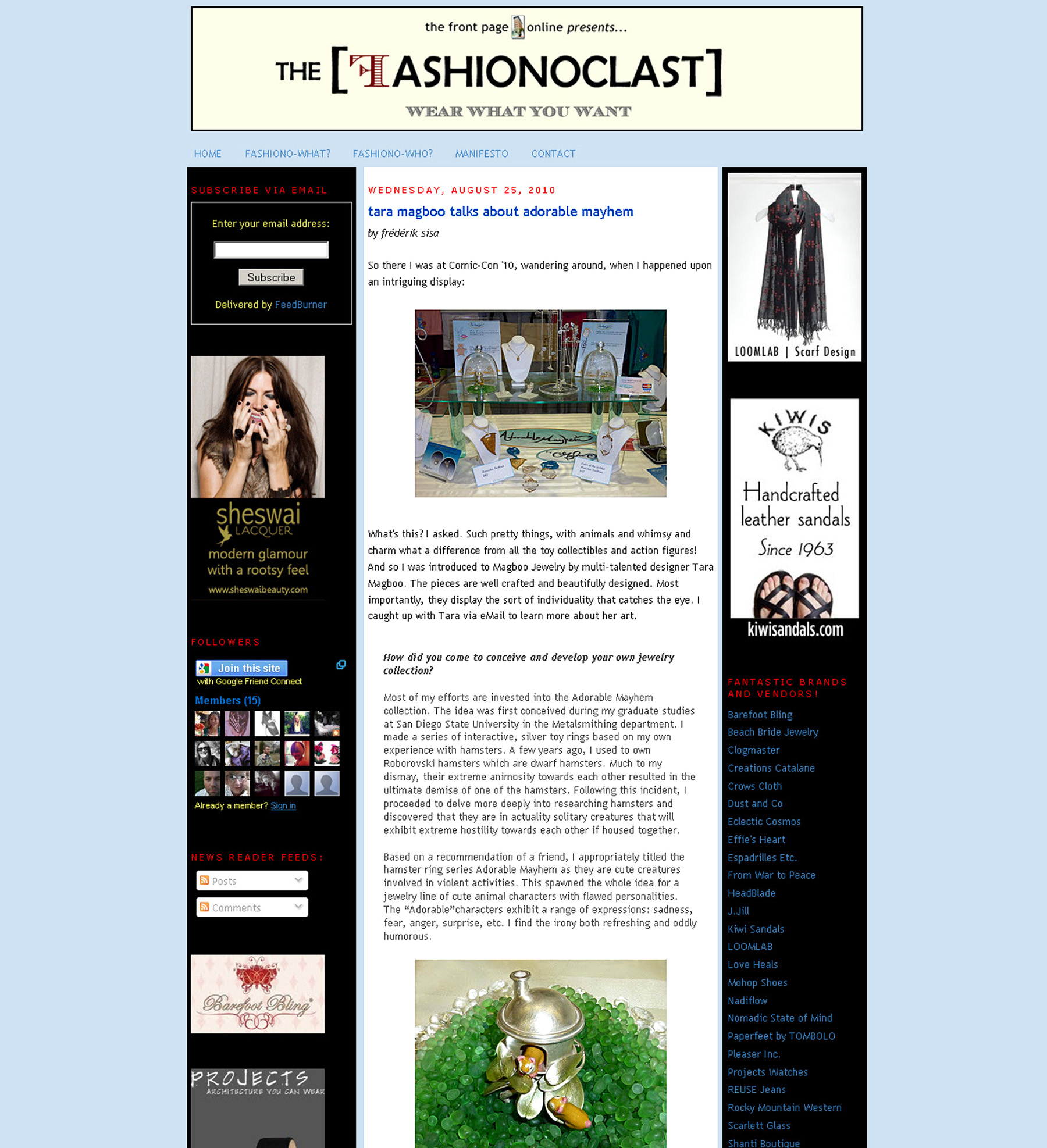 I was interviewed in-depth by fashion blog, Fashionoclast, about my Adorable Mayhem line at Comic-Con 2010.