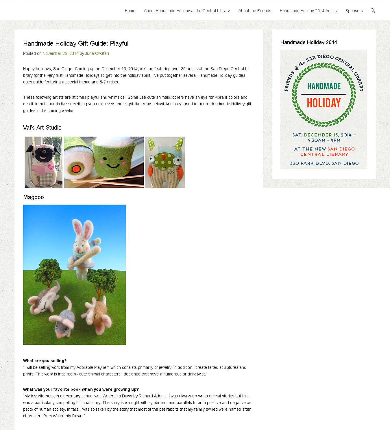 Handmade Holiday 2014 Artists