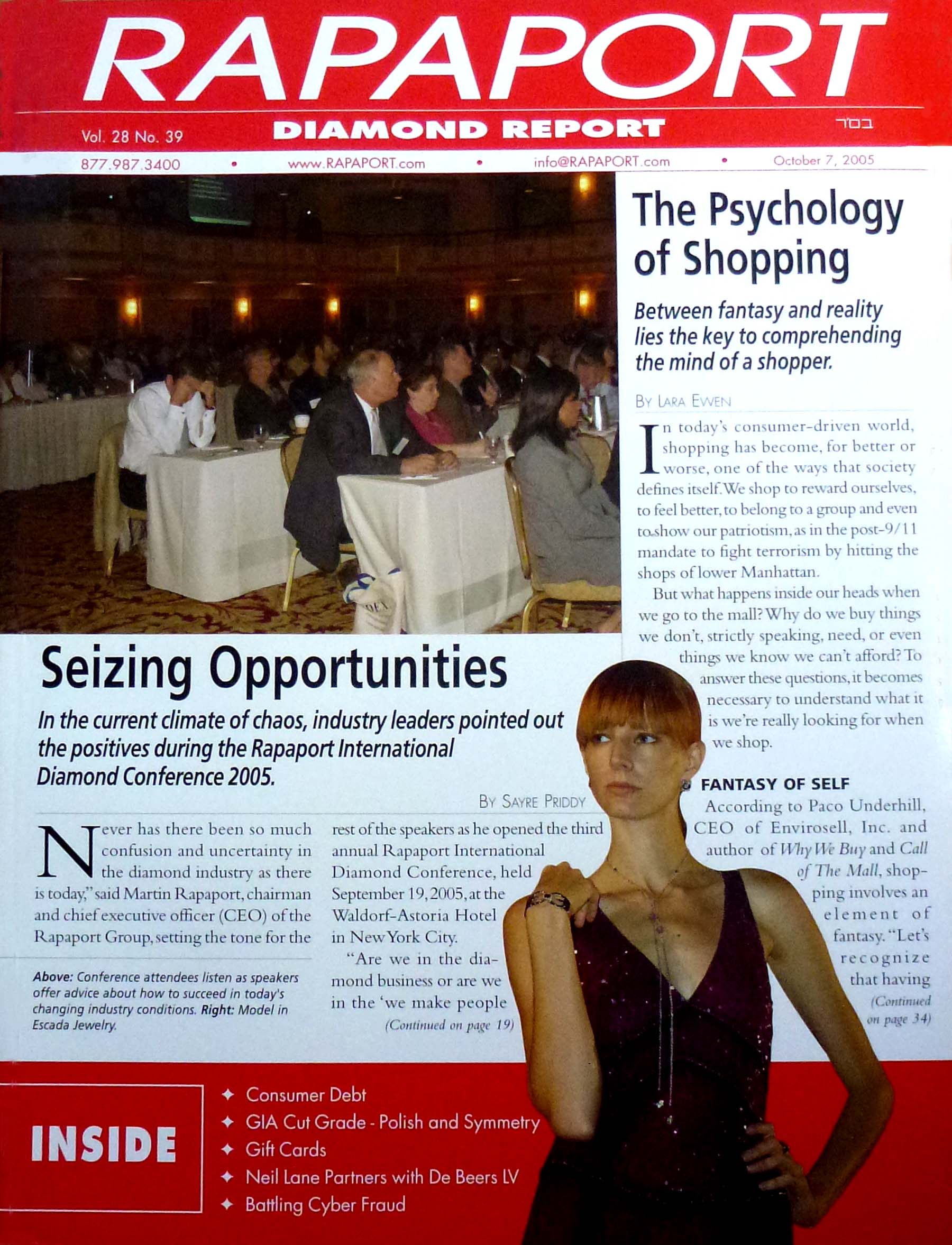 This is the Rapaport Diamond Report Magazine cover of issue Volume 28 No. 39 October 7, 2005 that features some of my work.